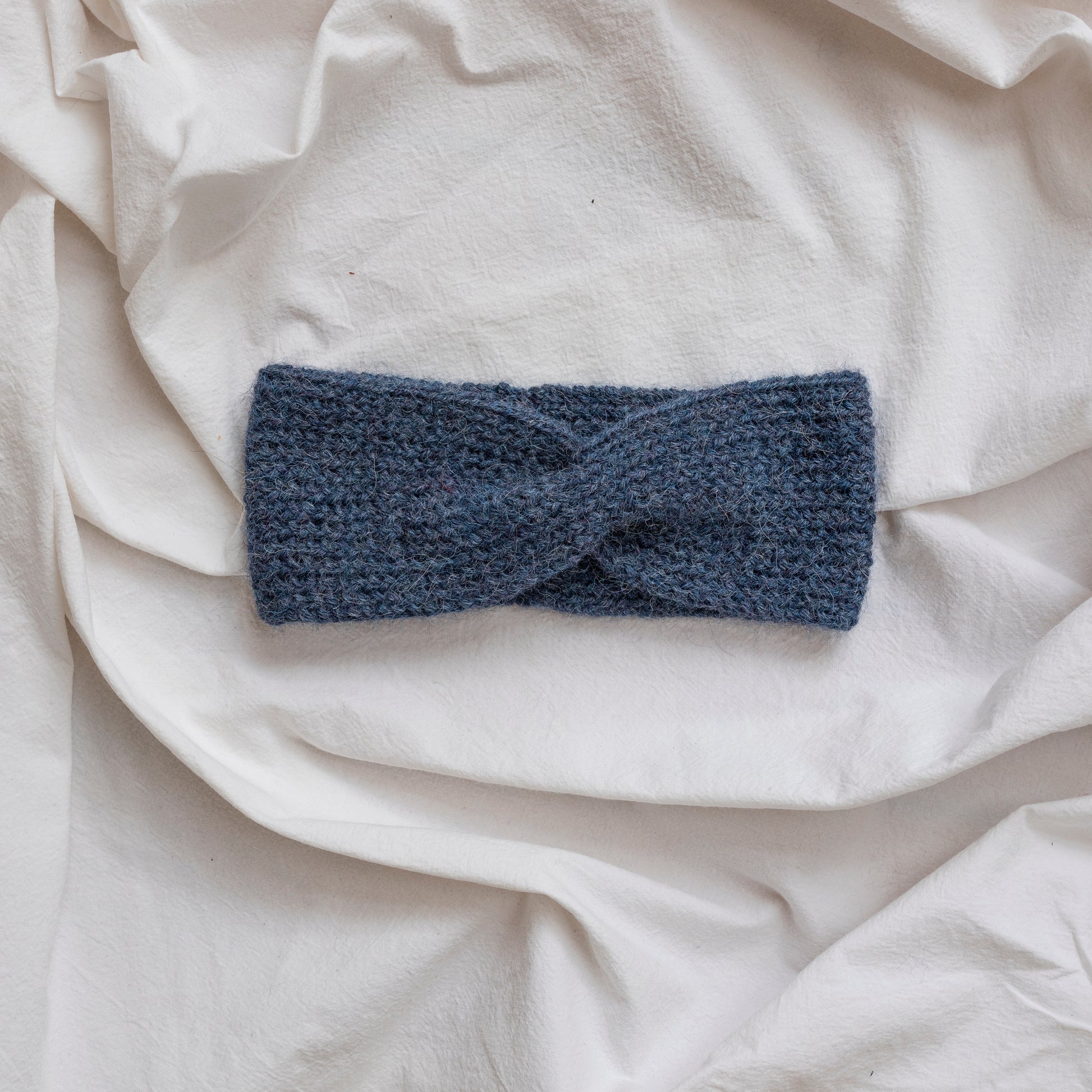 Hand knitted headband with a cute twist at the front. Keeps your ears warm and cosy and looks great. Soft and silky feel.
